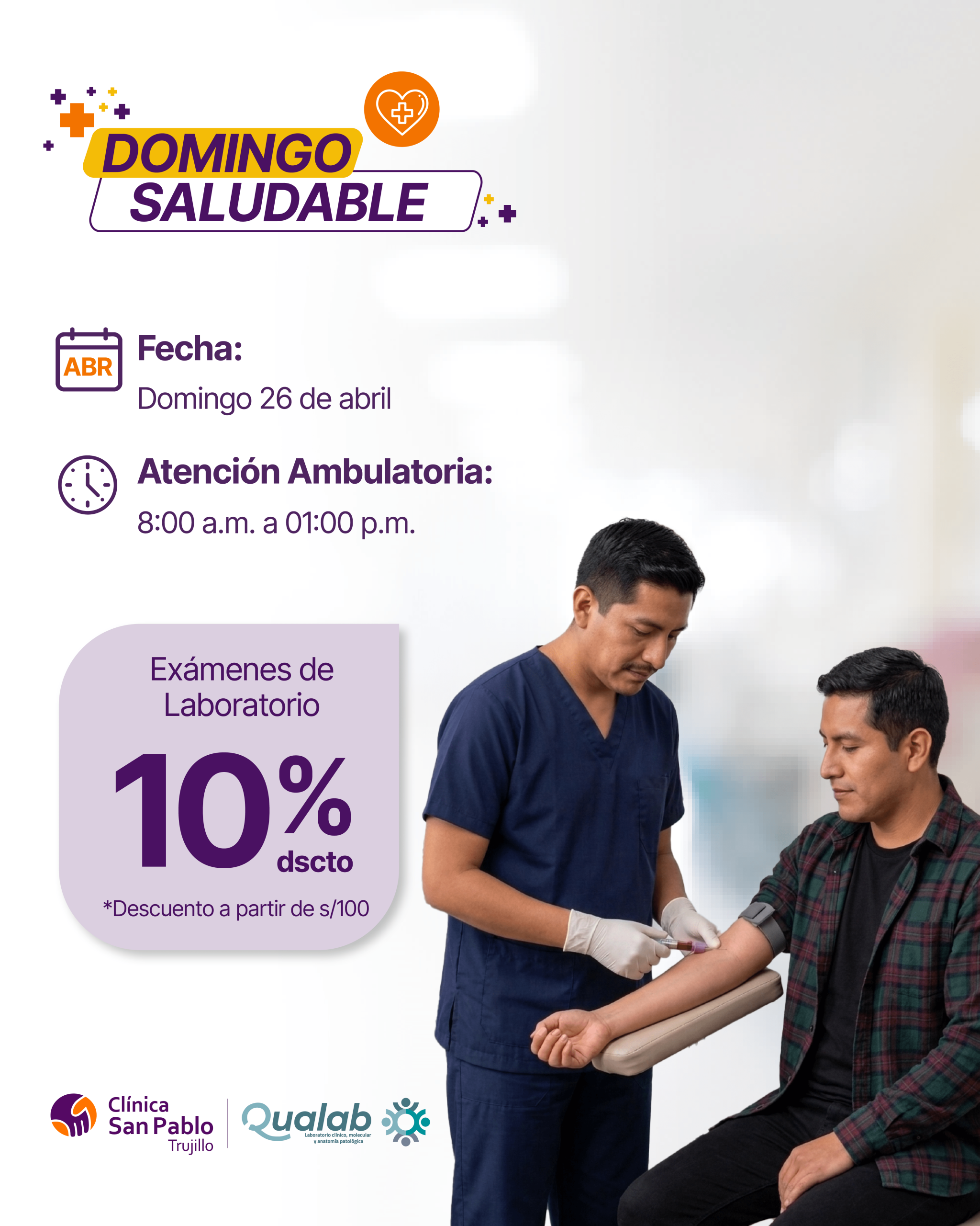 *Promoción realizada por Clínica San Pablo Trujillo y unidades : Qualab , Tomomedic , Plan Familiar