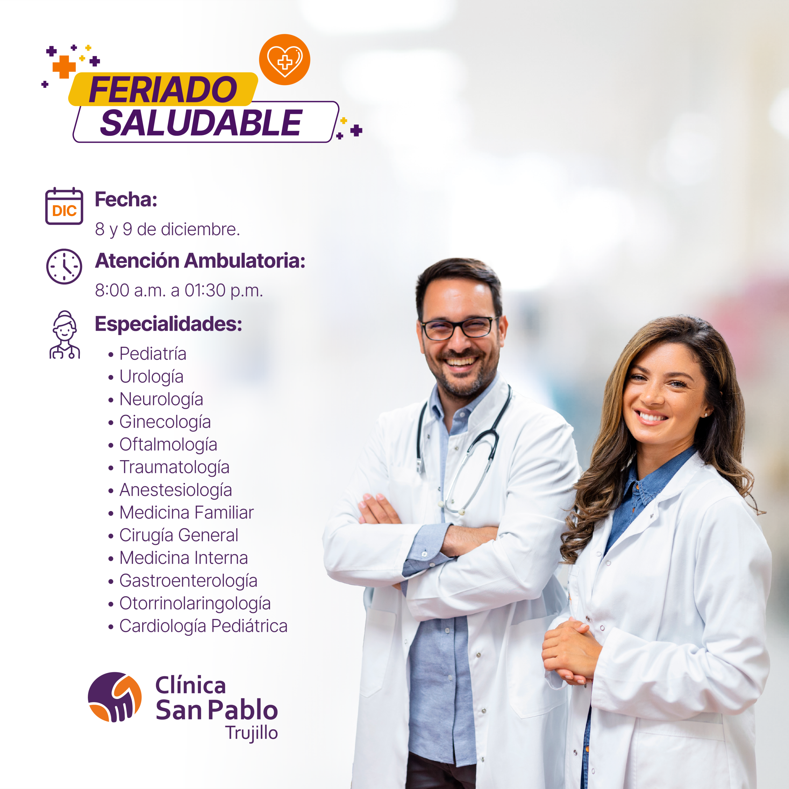 • Válido para el pacientes en general de la Clínica San Pablo Trujillo Vigencia solo 08/12/2025
