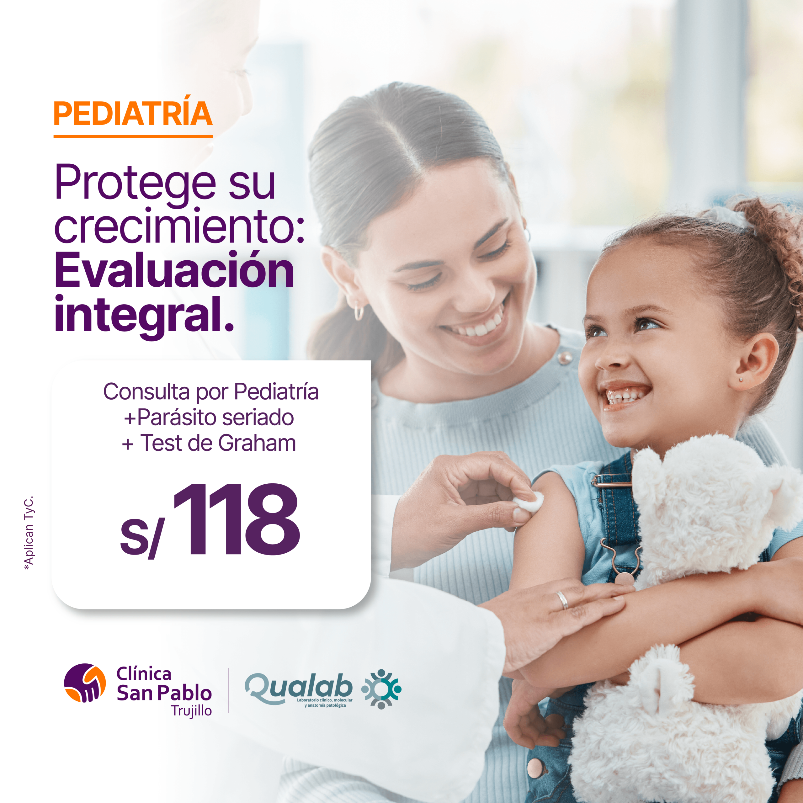 • Para acceder a la promoción, el paciente debe contactarnos y agendar su cita a través de nuestro Call Center (044)485244, WhatsApp 981492808 o en los módulos de admisión de la sede de Trujillo.